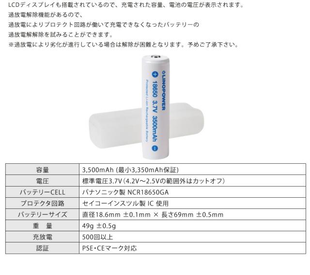18650 保護回路付 リチウムイオン充電池 LINOPOWER 3.7V 3500mAh LED フラッシュライト バッテリー リノパワー