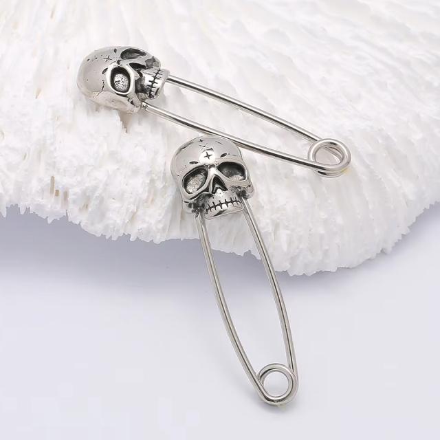 男性からも女性からも人気の骸骨モチーフは、安全ピンの部分はもちろんスカルもステンレス製なので、つけっぱなしでも安心。