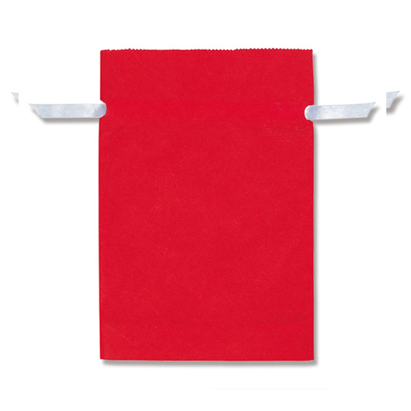 ギフトにおすすめのリボン付不織布巾着袋です。底マチも付いているのでたっぷり入ります。赤無地でシンプルな袋ですが白いリボンがアクセントになっています。アメニティグッズ等にも最適です。