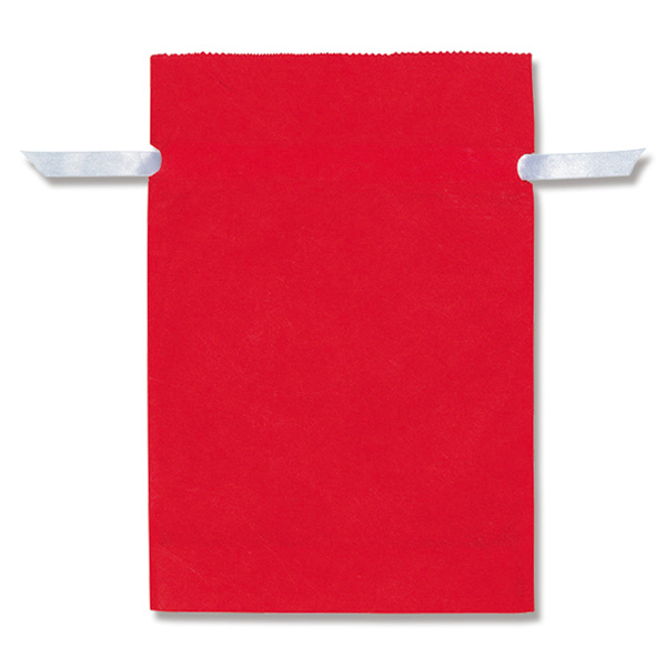 ギフトにおすすめのリボン付不織布巾着袋です。底マチも付いているのでたっぷり入ります。赤無地でシンプルな袋ですが白いリボンがアクセントになっています。アメニティグッズ等にも最適です。