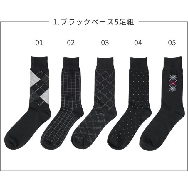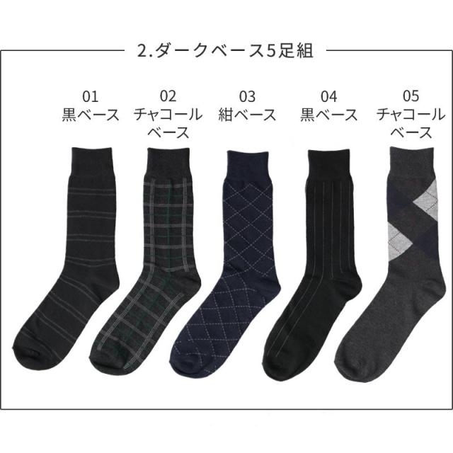 靴下 カジュアル 柄靴下 5足セット メンズ 紳士 綿混 2セットの場合は2通で発送 メール便で送料無料 oth-me-so-1670 ソックス セット アーガイル チェック ストライプ 25cm 26cm 27cm ポイント消化
