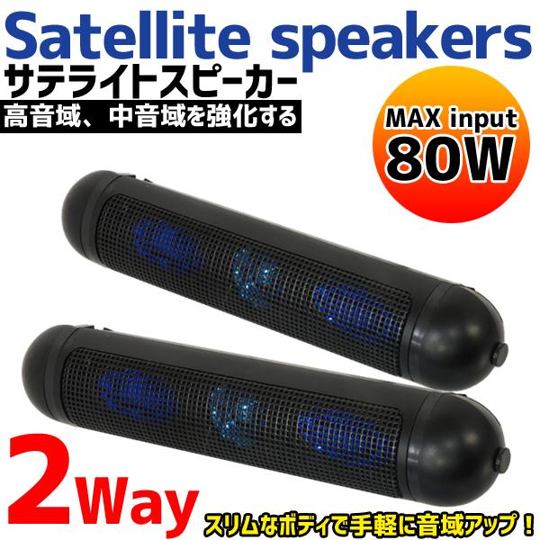 2WAY サテライトスピーカー オーディオ スピーカー カースピーカー スピーカ 車 車載用 カーオーディオ スリム 車内 音楽 ドライブ EDM 配線コード付き スリム コンパクト 高音 中音