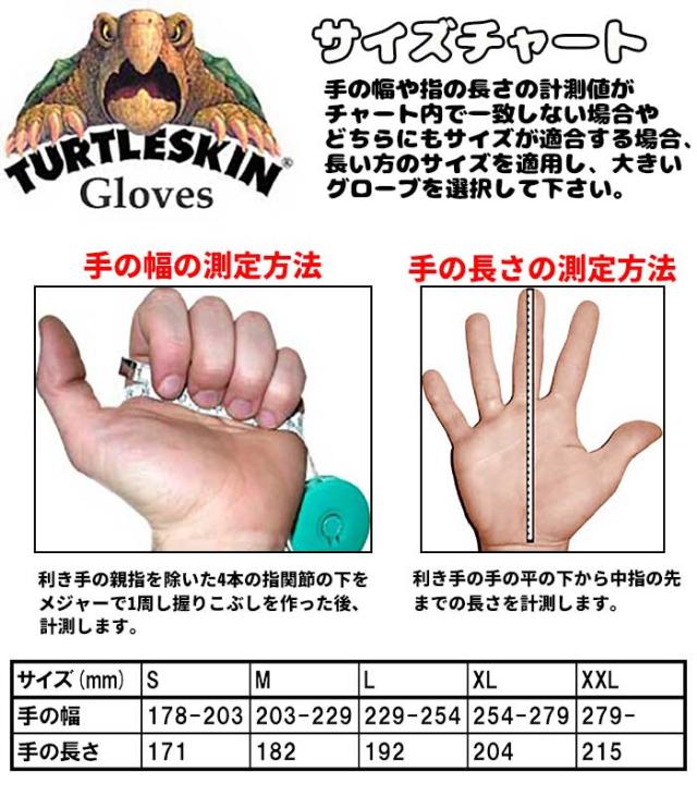 手のひらと指腹部分には特許を取得した最新のタートルスキンを使用。