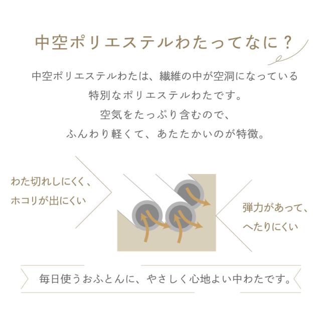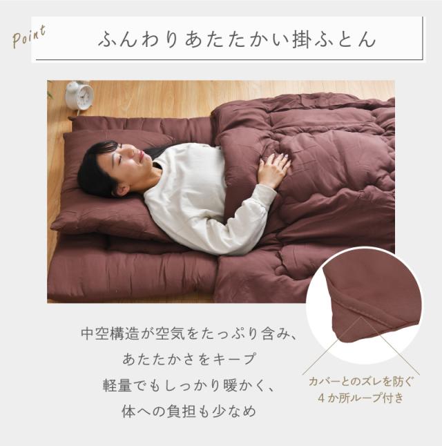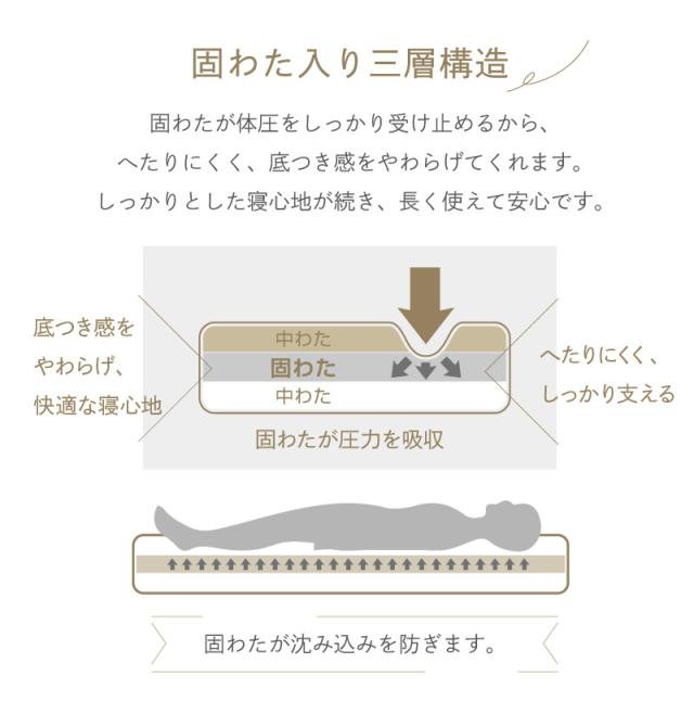 掛け布団はふっくら増量タイプ 敷き布団は三層固わたタイプ