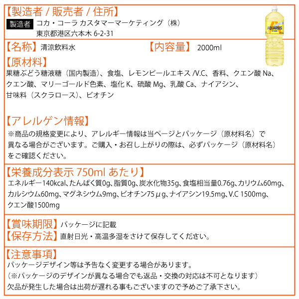 アクエリアス ビタミン 2000ml 6本 (6本×1ケース) PET スポーツ飲料 スポーツドリンク アクエリ 熱中症対策 送料無料