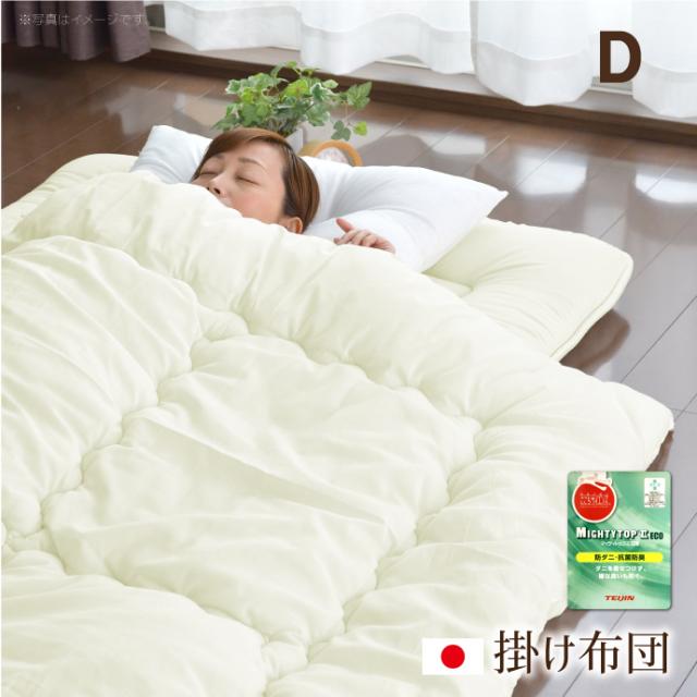 掛布団 防ダニ ダブル D 送料無料 日本製 オールシーズン ほこりの出にくい布団 帝人 マイティトップ綿 ズレ防止ひも付き 掛け布団