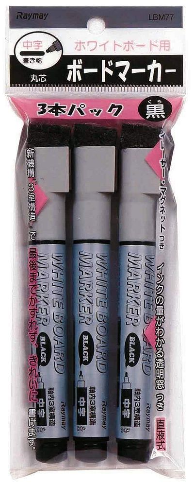 【メール便発送】レイメイ藤井 ホワイトボード用ボードマーカー 直液式 中字 黒 3本パック LBM77