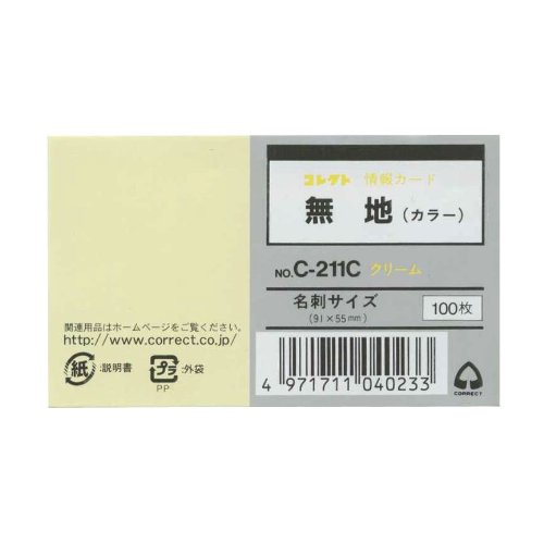 【メール便発送】コレクト 情報カード クリーム 名刺サイズ 無地 C-211C-CR