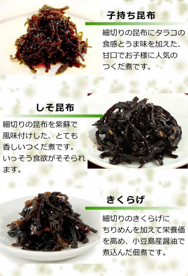 瀬戸内ならではの香川・小豆島の醤油でじっくりと炊き上げた大森屋オリジナルの美味しい佃煮の詰め合わせセットです。送料無料・消費税込みの、お買い得なお求め易いセットです。//母の日 父の日 敬老の日 お中元 お歳暮 ギフト お供え 敬老の日 土産
