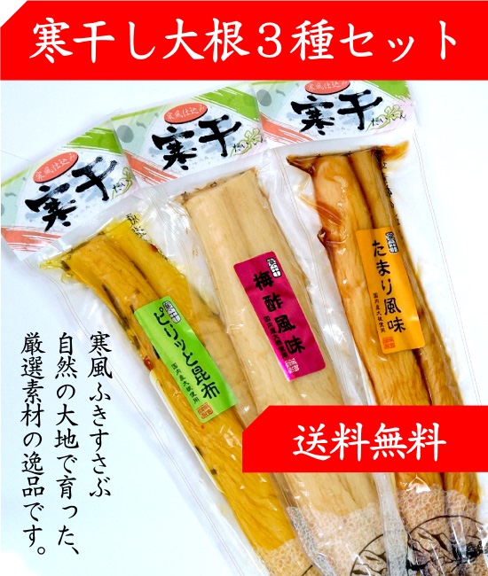 ■セット内容:寒干大根 3種類(たまり風味、梅酢風味、ピリッと昆布)各1本