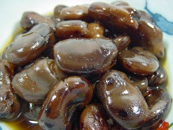 しょうゆ豆はさぬき独自の郷土料理で一般的な煮豆とはちがい、そら豆をこげ目のつくまで炒って、特製の醤油だれに漬けた素朴な家庭の味です。讃岐うどんの添え物としてや、その昔から四国巡礼のお遍路さんの「おせったい」にも欠かせなかったそうです。
