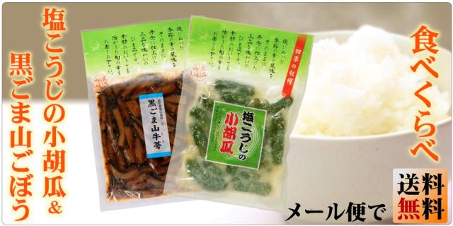 塩こうじの小胡瓜・黒ごま山ごぼう ご飯の友 送料無料 メール便