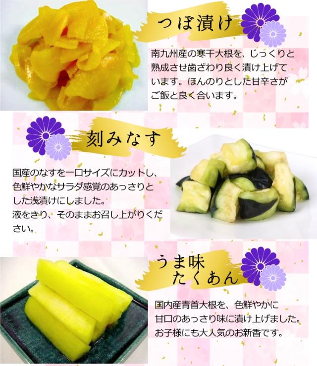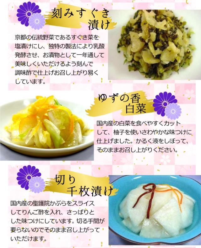 季節のごあいさつにぴったり。 食卓に彩りを添える、国産原料を使った当店人気のお漬物のセットです。