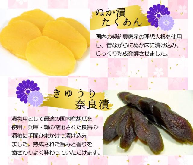 | ■セット内容: | つつぼ漬け / 刻みなす / うま味たくあん / 刻みすぐき漬け / ゆずの香白菜 / 切千枚漬け / ぬか漬けたくあん / きゅうり奈良漬け 各1袋 |