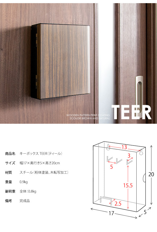キーボックス TEER(ティール) 鍵収納 壁面収納 木目調 おしゃれ(代引不可)【送料無料】