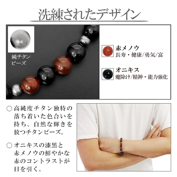 ファイテン 限定品 チタン 天然石 パワーストーン ブレスレット オニキス 赤メノウ 8mm 18〜23cm 日本製