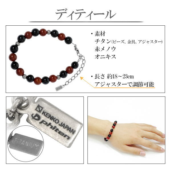 ファイテン 限定品 チタン 天然石 パワーストーン ブレスレット オニキス 赤メノウ 8mm 18〜23cm 日本製 スポーツ 肩こり ファイテン