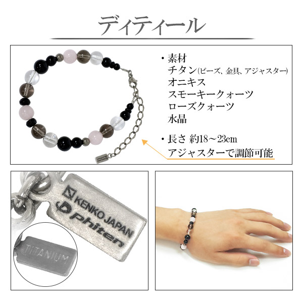 ファイテン 限定品 チタン 天然石 パワーストーン ブレスレット オニキス ローズクォーツ 8mm 18〜23cm 日本製 スポーツ 肩こり
