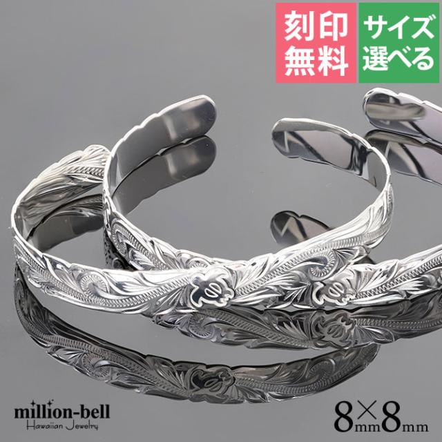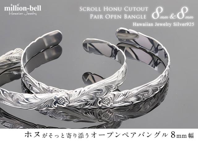 ハワイアンジュエリー バングル ハワイアンジュエリー ブレスレット ペアバングル 幅8mm 刻印 無料 サイズが選べる オープンバングル ペア 2本セット カットアウト ホヌ シルバー925 太め カップル 夫婦 プレゼント ホワイトデー 卒業式 入学式 【品番:B5080-8P】