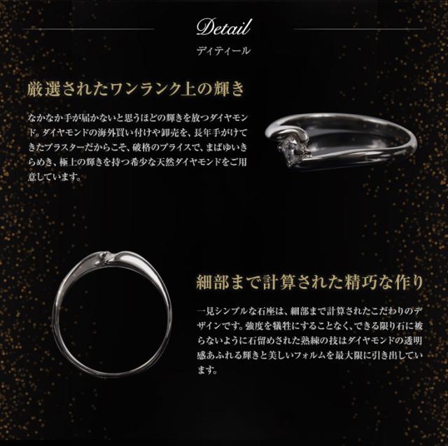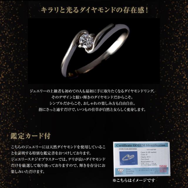 【素材・商品サイズ】ストーン:ダイヤモンド 0.1ct H-SI2-GOODUP リングサイズ:6号~18号 金性:プラチナ PT900 鑑定カード付手元を女性らしく華やかに演出をしてくれるプラチナダイヤモンド。長年ダイアモンドの海外買付や卸売を手掛けてきたジュエリースタジオ プラスターならではのお得なプライスで。送料無料でお届けいたします。