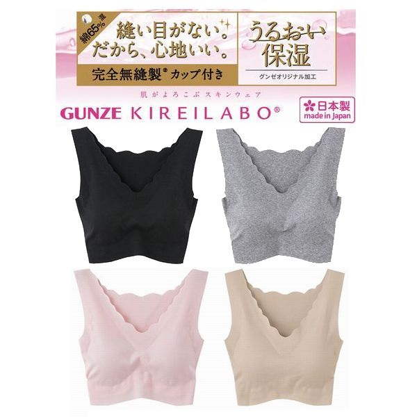 グンゼ ハーフトップ カップ付き パット付き ブラジャー 綿混 インナー ブラ キレイラボ 肌着 無縫製 レディース 婦人 日本製 KL2055
