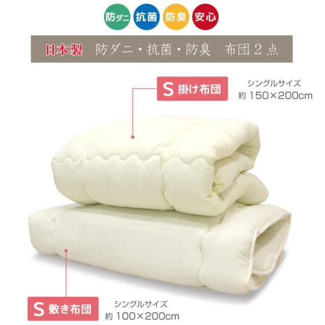 布団セット 防ダニ 2点 シングル S 送料無料 日本製 帝人 マイティトップ 掛布団 敷布団 布団2点セット シングル布団セット