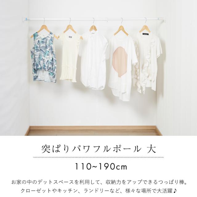 突ぱりパワフルポール 大 白 幅:110〜190cm 耐荷重:45〜15kg RTW-110 突ぱり棒 つっぱり棒 ツッ