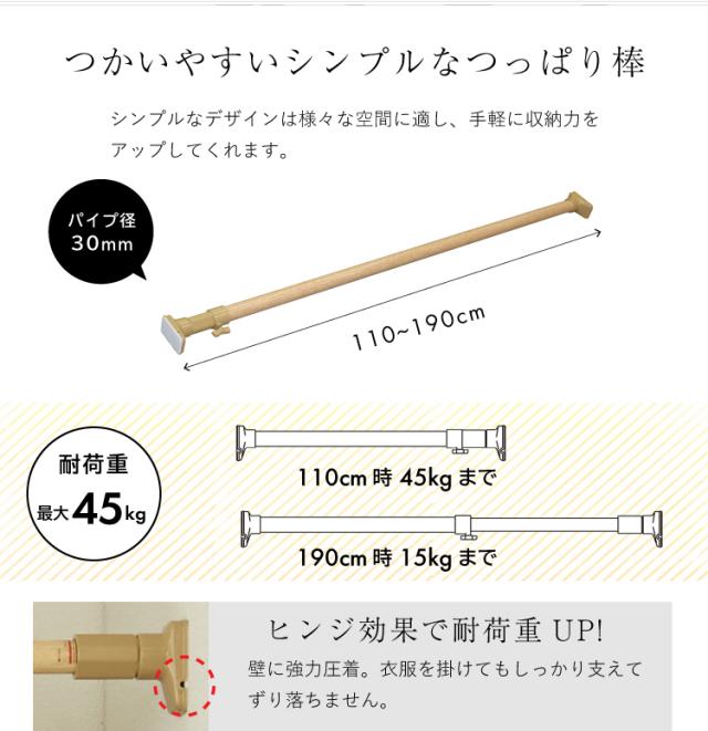 ニュー突ぱり強力ポール 大 木調 幅:110〜190cm 耐荷重:45〜15kg NPM-110【突ぱり棒 つっぱ