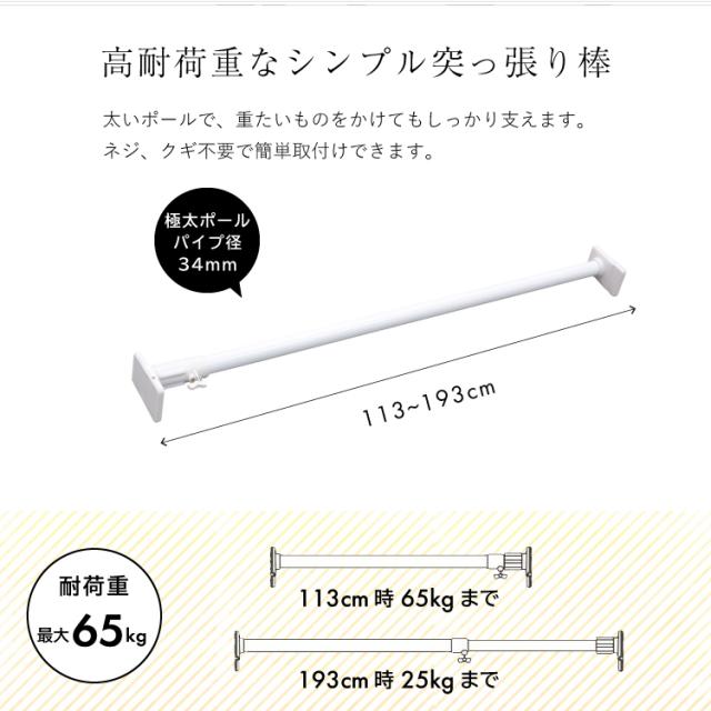 突ぱりスーパー極太ポール 大 白 NGP-110【 突ぱり棒 つっぱり棒 ツッパリ棒 突っ張り棒 パーテ