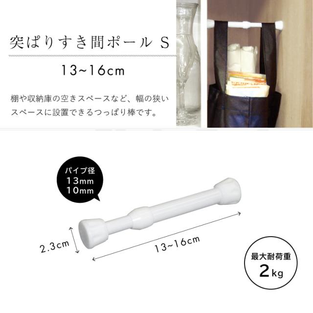 小さなすき間を大きく活かすミニサイズの突っぱり棒のSサイズです。