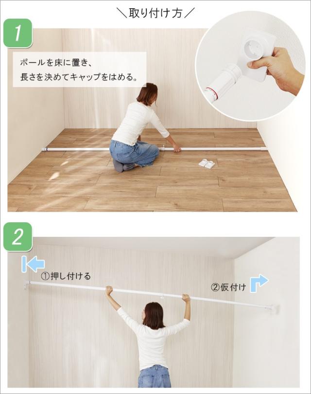 初めにポールを床に置いて長さを決められるのも簡単な設置ポイントです。