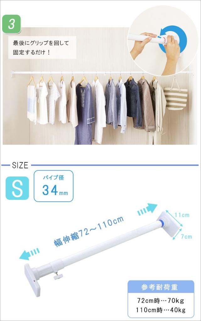 【送料無料】突ぱり棒 簡単極太ポール S【 突ぱり棒 つっぱり棒 ツッパリ棒 突っ張り棒 パーテ