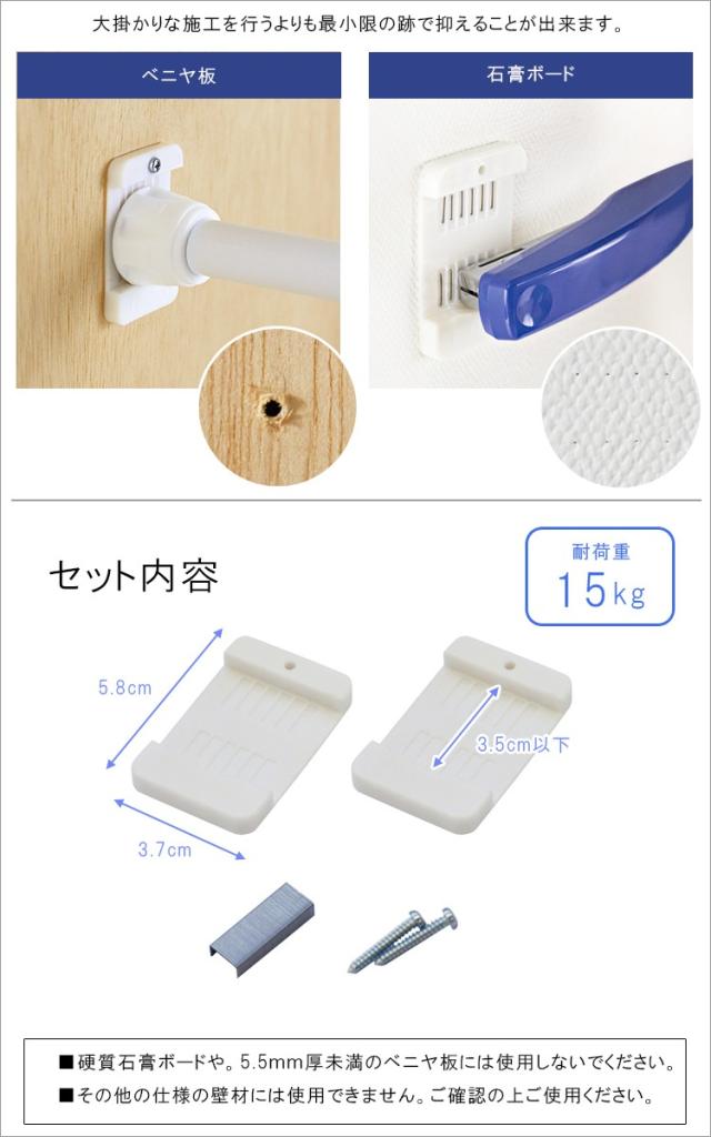 石こうボードやベニヤ板に固定する事で、突っ張り棒や突っ張り棚を強力に支えます。