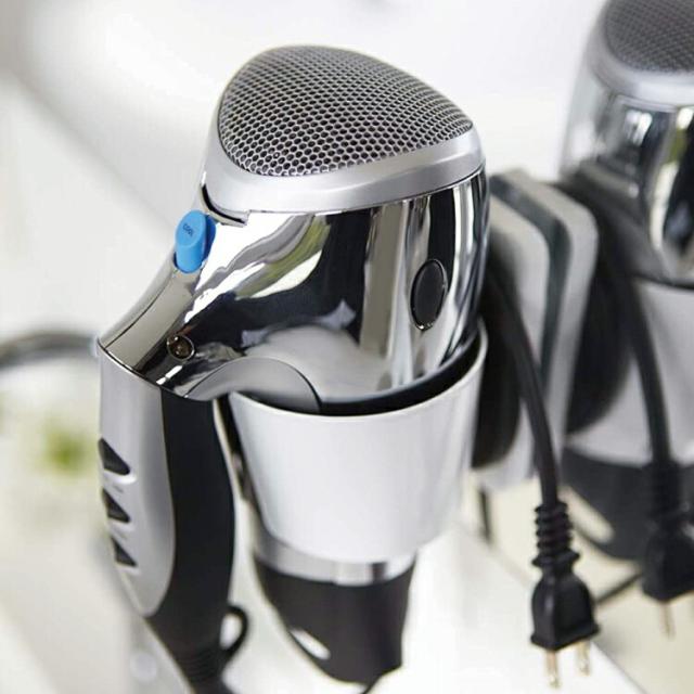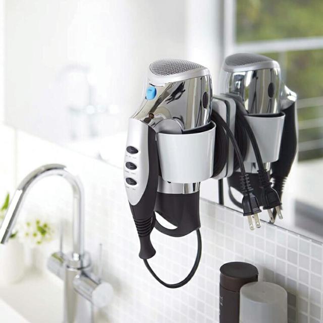 洗面台のタイルや鏡などに吸盤で取り付けられるからドライヤーの出し入れがスムーズです。