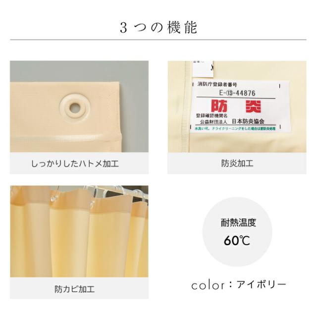 シャワーカーテン 無地 防炎・防カビ加工 アイボリー 130cmx180cm LB64 カーテン バスカー