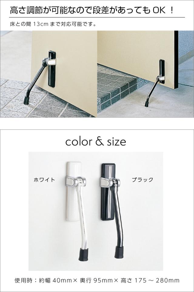 足で押し下げるだけでピタッと止まる、高さ調節可能なスライド式のドアストッパー。