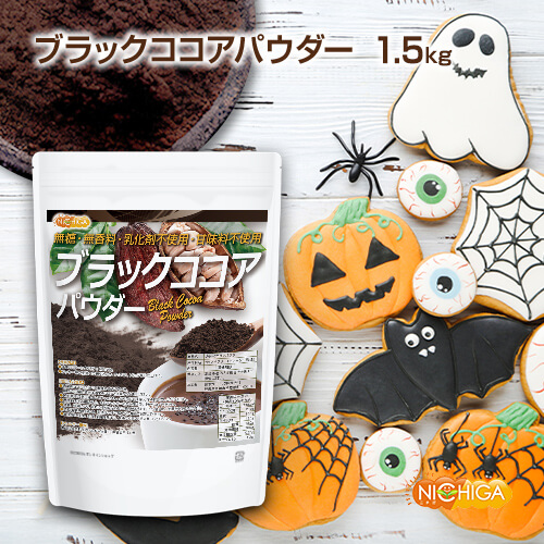 ブラックココアパウダー 1.5kg 無香料・砂糖不使用・食物繊維豊富 カカオ100% 濃いココア色 NICHIGA(ニチガ) TK0