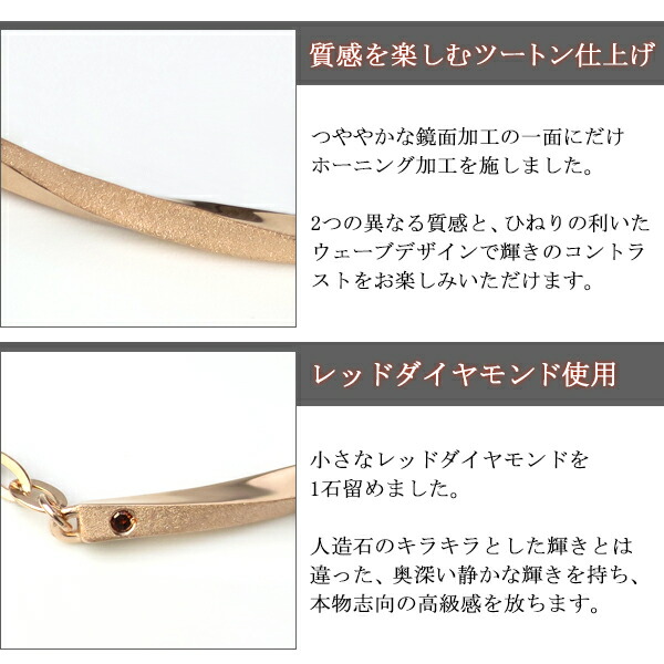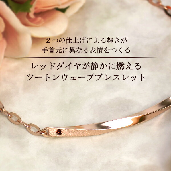ツートン ウェーブ レッドダイヤモンド ブレスレット ピンクゴールド シルバー925 ピンク ゴールド シンプル ダイヤモンド おしゃれ