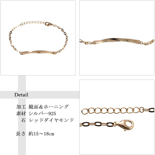(レディースブレスレット/女性用アクセサリー/シルバーアクセサリー/シルバー/Silver925/ピンク/ゴールド/ピンクゴールド/赤/レッドダイヤモンド/シンプル/スタイリッシュ/流行り)