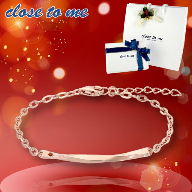 【close to me】 レッドダイヤモンド ウェーブ チェーン ピンクゴールド ブレスレット 【ブランドBOX付き】