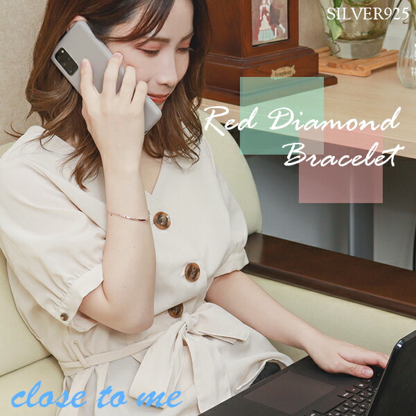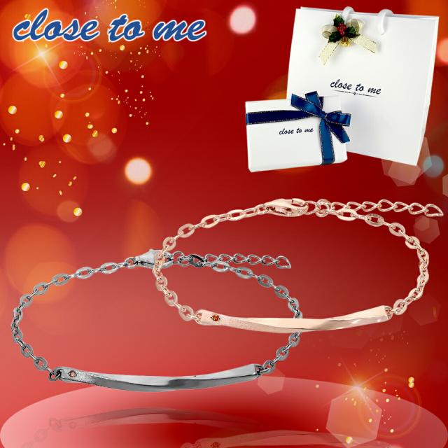 【close to me】 レッドダイヤモンド ウェーブ チェーン ペアブレスレット 【ブランドBOX付き】