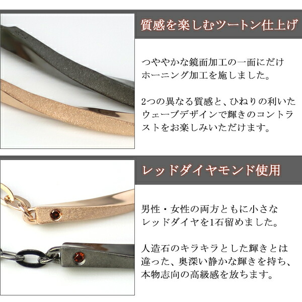 刻印無料 ペアブレスレット ツートン ウェーブ レッドダイヤモンド ブレスレット ペア シンプル ピンクゴールド ブラック シルバー カップル ペアブレスレット 2本セット ブランド