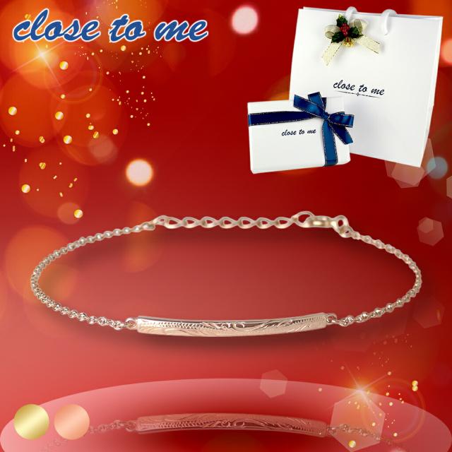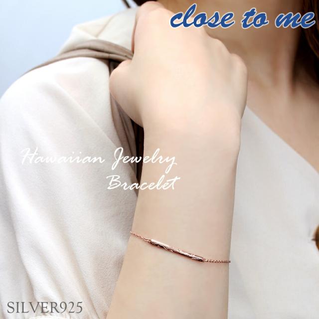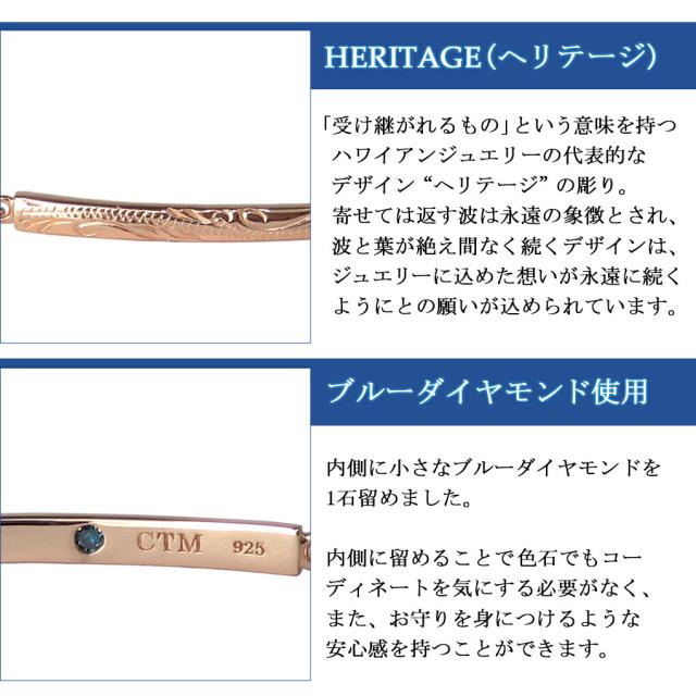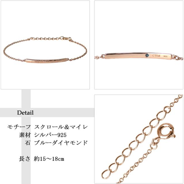 ハワイアンジュエリー ブルーダイヤモンド ブレスレット ピンクゴールド 当店限定 ゴールド 金色 ハワイ 彫刻 マイレ シルバー925 ピンク シンプル