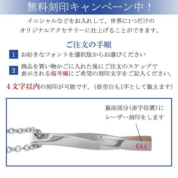 ※ご希望の刻 印文字は商品をお買い物かごに入れた後、ご注文ステップ時の備考欄に、メンズ・レディースそれぞれご記入下さい。