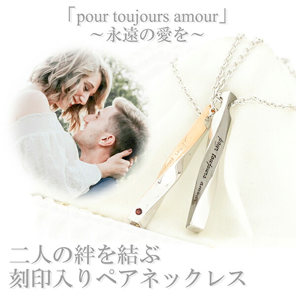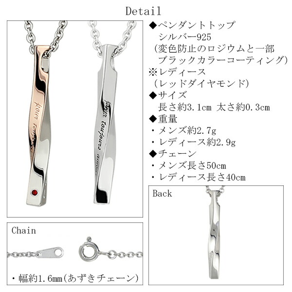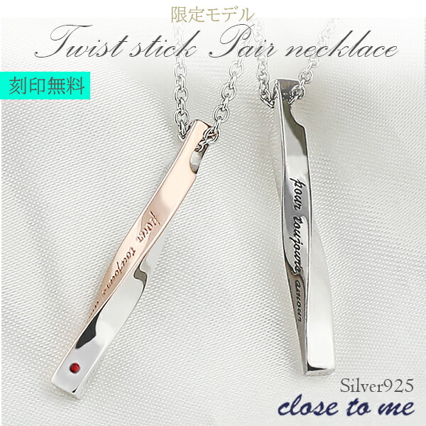 刻印無料限定close to meツイストスティックレッドダイヤシルバーペアネックレス 送料無料 ペアアクセサリー ネックレス ペア カップル ブランド シルバー 2本セット ペアネックレス 刻印