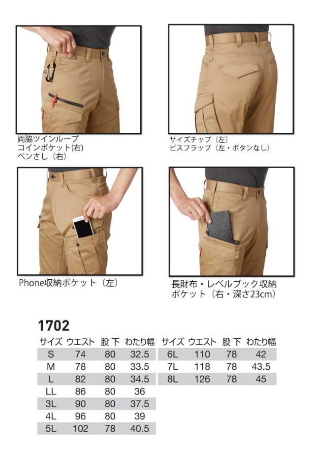 BURTLE バートル カーゴパンツ 1702 秋冬