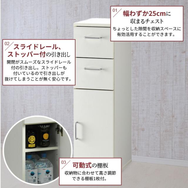 キャビネット すきま収納 25cm キッチン 収納 引出収納 2杯 扉収納 ペットボトル ストッカー 隙間 収納 棚 すき間ラック チェスト スリム