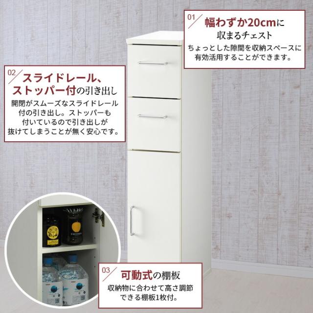 | 【Slender/スレンダー】 ● 隙間キャビネット:幅20cm/幅25cm ● 隙間チェスト:幅20cm/幅25cm ● 隙間ストッカー:幅20cm/幅25cm ※このページは[Slender 隙間チェスト 幅20cm]を販売しております。 |