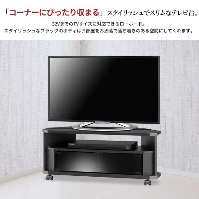 【値下げ】テレビボード コーナーテレビ台 テレビ台 コーナー 幅80 32インチ対応 テレビラック キャスター付 省スペース TV台 ブラック シンプル