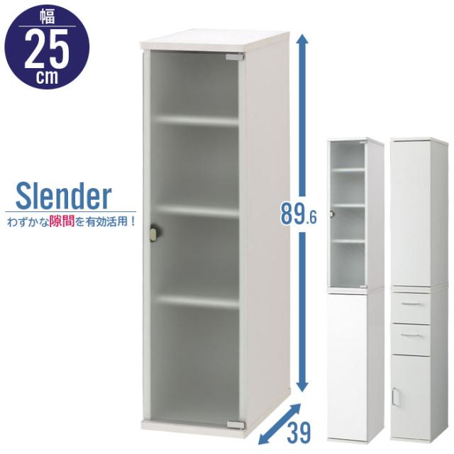 【値下げ】キャビネット すきま収納 25cm キッチン 収納 食器棚 隙間収納 収納棚 棚 ラック すき間 ガラス扉 扉収納 すき間ラック スリムラック